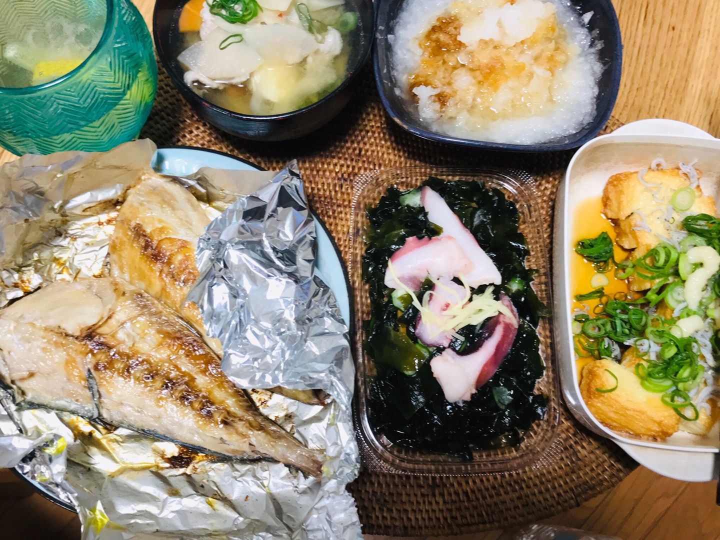 こんばんは、小倉は曇り☁️です。日曜日の家呑みは、あじの焼き物、ダイコンおろし、しらすと細ねぎとニンニクをトッピングした豆乳かまぼこ、タコとワカメの酢の物、卵🥚入り豚汁とレモン🍋入り酎ハイでした。この後は、筑前煮を肴に芋焼酎を飲みます。今日も素適な日曜日となりますように ブログランキングに参加しています。 記事にビビっときたらワンクリックお願いします!♪!!アダルトトラックバックやコメントはやめてください!!