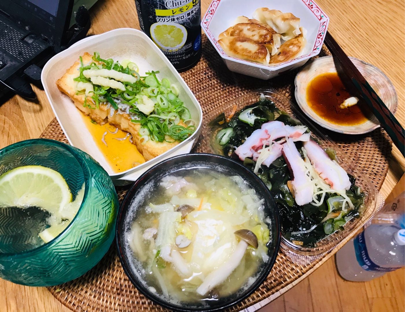 こんばんは、小倉は曇り☁️です。木曜日の家呑みは、しらすと細ねぎとニンニクをトッピングした豆乳かまぼこ、卵🥚入り豚汁、タコとワカメの酢の物、餃子とレモン🍋入り酎ハイでした。卵🥚入り豚汁の野菜は、シメジ、白菜でした。この後は、筑前煮を肴に芋焼酎を飲みます。素敵な木曜日となりますようにブログランキングに参加しています。 記事にビビっときたらワンクリックお願いします!♪!!アダルトトラックバックやコメントはやめてください!!