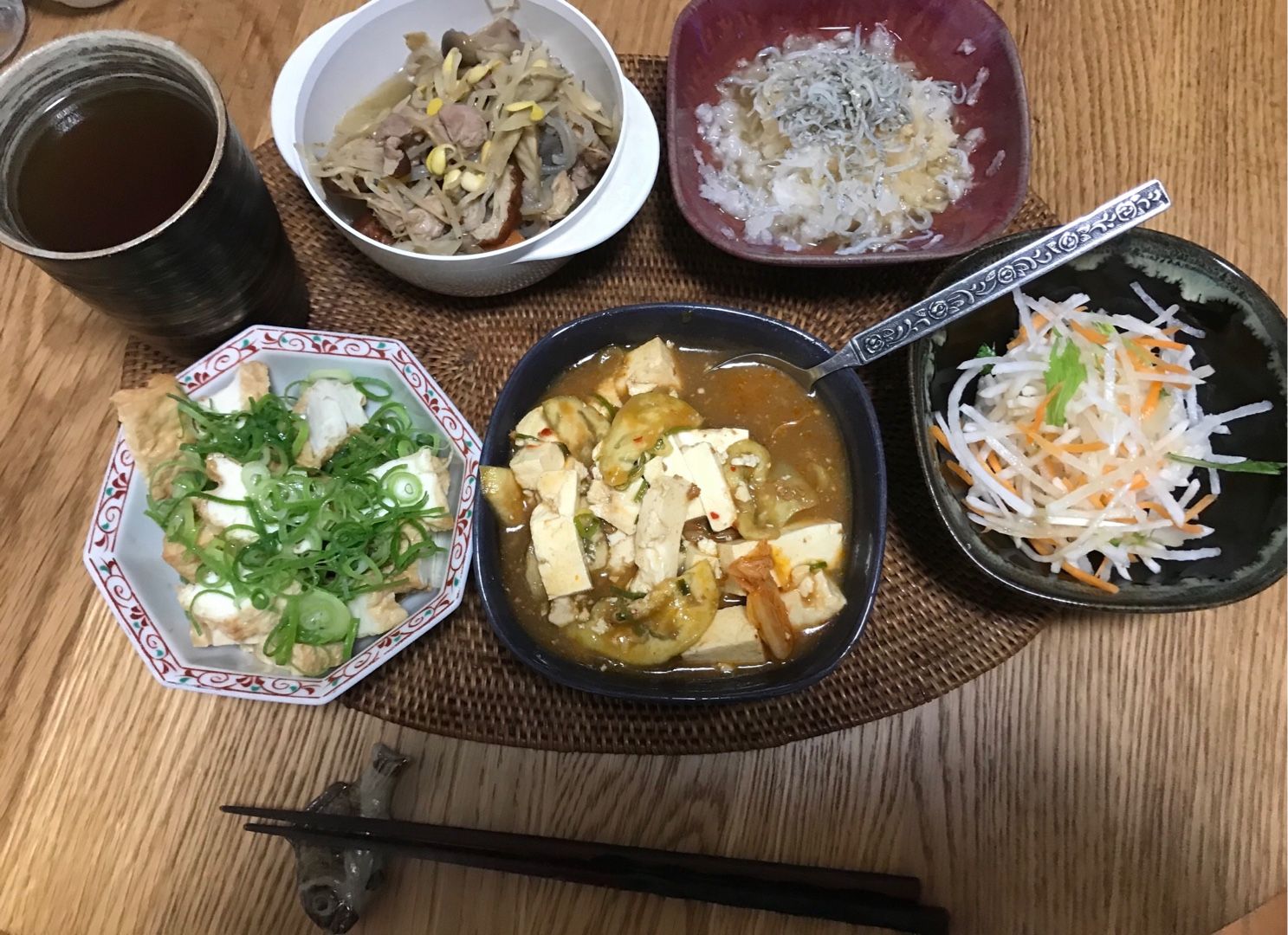 こんばんは、小倉は星明かりです。金曜日の家呑みは、筑前煮、細ねぎとアマニ油をトッピングした絹揚げ豆腐、茄子🍆と白菜キムチをトッピングした麻婆豆腐、ちりめんダイコンスリ、カットダイコンサラダ、ごぼう茶割り芋焼酎でした。この後は、お代わりの麻婆豆腐、細ねぎとニンニクをトッピングした豆乳かまぼこ、引き割り納豆ダイコンスリを肴にごぼう茶割り芋焼酎を飲みます。素敵な金曜日となりますように 記事にビビっときたらワンクリックお願いします!♪!!アダルトトラックバックやコメントはやめてください!!