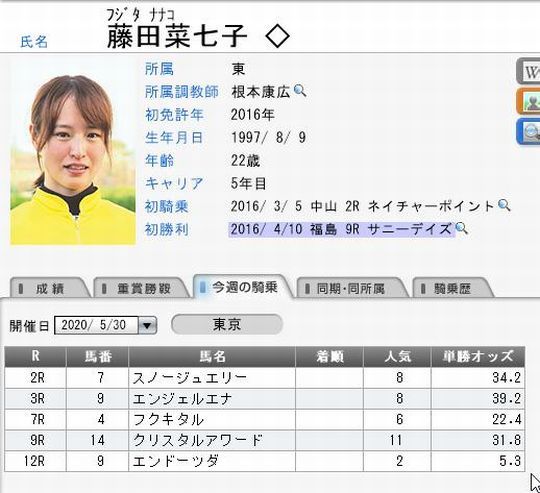 おはようございます。😃小倉は曇りです。藤田菜七子騎手、日曜日の騎乗予定素敵な日曜日となりますように 記事にビビっときたらワンクリックお願いします!♪!!アダルトトラックバックやコメントはやめてください!!