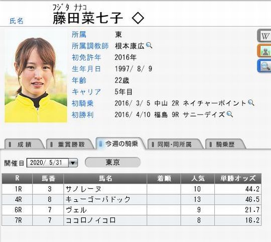 おはようございます。😃小倉は曇りです。藤田菜七子騎手、土曜日の騎乗予定素敵な土曜日となりますように 記事にビビっときたらワンクリックお願いします!♪!!アダルトトラックバックやコメントはやめてください!!