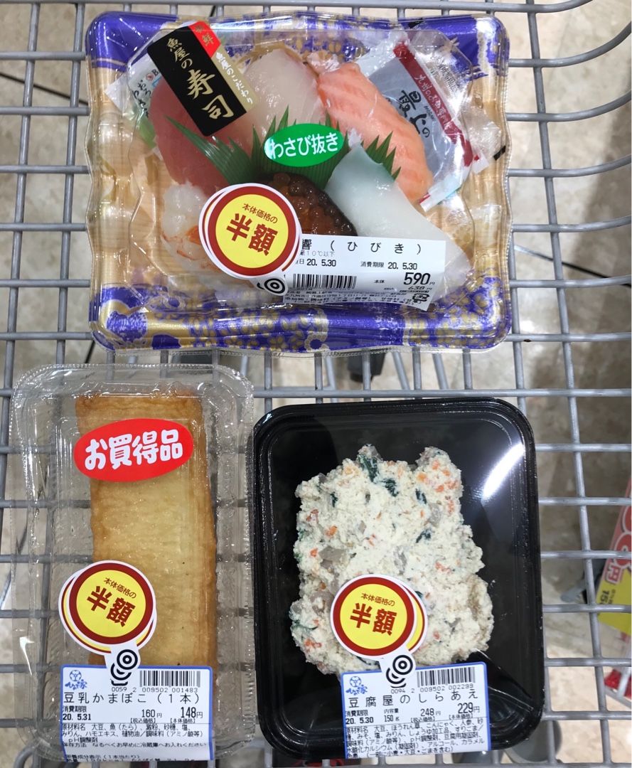こんばんは、小倉は曇り☁️です。サンリブの見切り品は、白和え、豆乳かまぼこ、お寿司でした。素敵な土曜日となりますように 記事にビビっときたらワンクリックお願いします!♪!!アダルトトラックバックやコメントはやめてください!!
