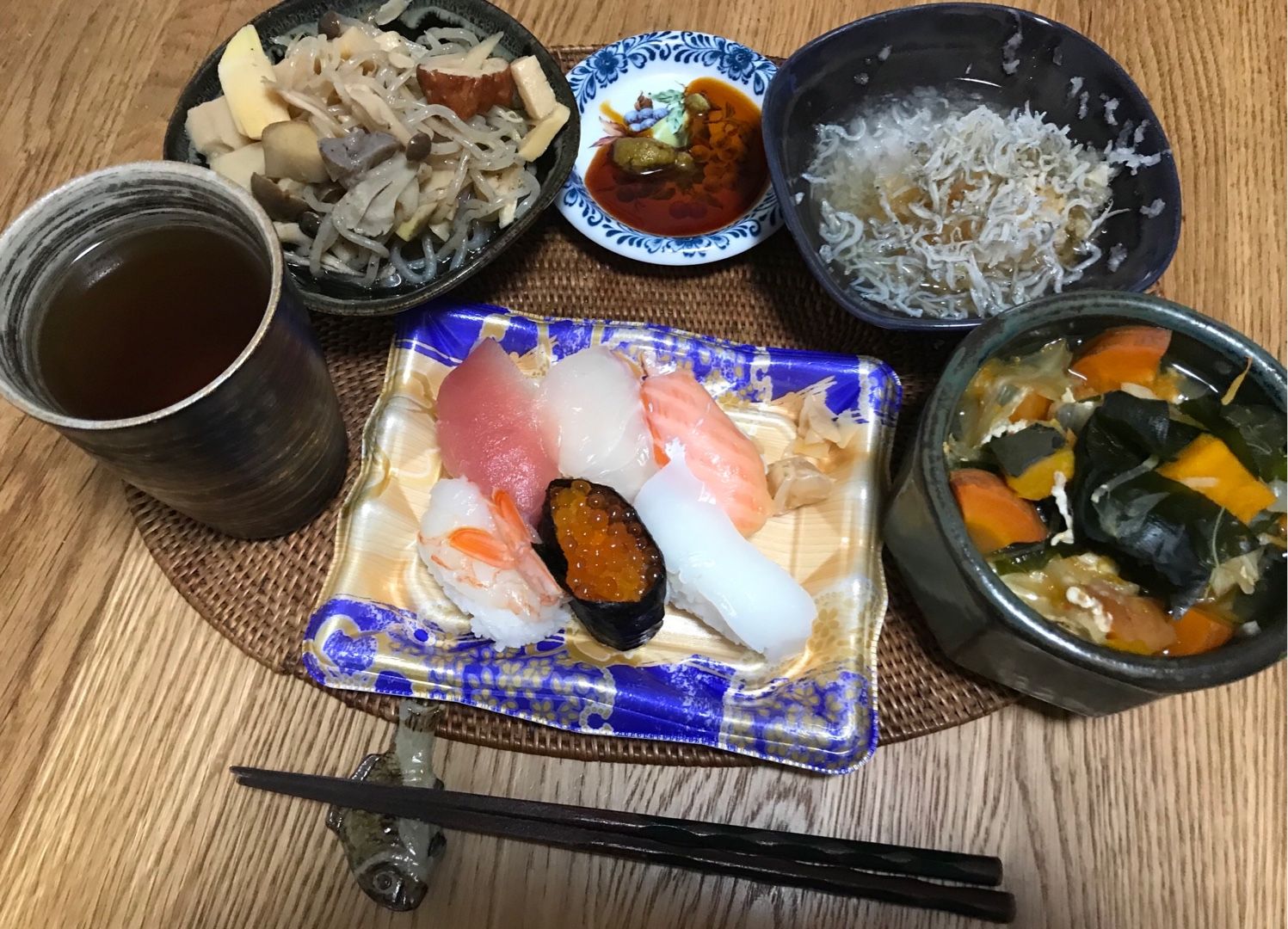 こんばんは、小倉は曇り☁️です土曜日の家呑みは、にぎり寿司、筑前煮、ちりめんダイコンスリ、卵🥚入り野菜スープ、ごぼう茶割り芋焼酎でした。この後は、細ねぎとアマニ油をトッピングした絹揚げ豆腐、引き割り納豆ダイコンスリ、お代わりの筑前煮、白身魚のフライを肴にごぼう茶割り芋焼酎を飲みます。素敵な土曜日となりますように 記事にビビっときたらワンクリックお願いします!♪!!アダルトトラックバックやコメントはやめてください!!