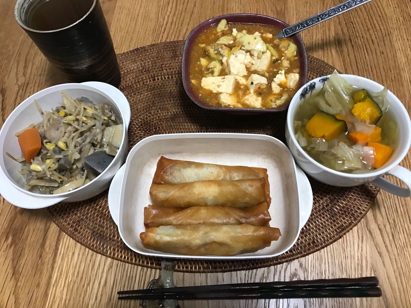 こんばんは、小倉は雨☂️です。月曜日の家呑みは、筑前煮、春巻き、茄子🍆と白菜キムチをトッピングした麻婆豆腐、野菜スープとごぼう茶割芋焼酎でした。この後は、お代わりの麻婆豆腐を肴にごぼう茶割芋焼酎を飲みます。素敵な月曜日となりますように 記事にビビっときたらワンクリックお願いします!♪!!アダルトトラックバックやコメントはやめてください!!