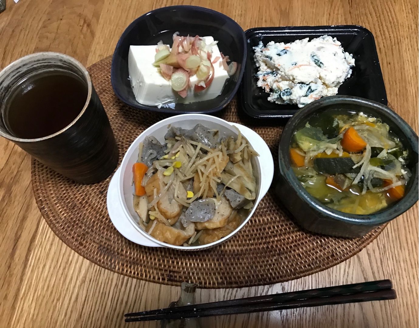 こんばんは、小倉は曇り☁️です。火曜日の家呑みは、筑前煮、白あえ、みょうがつき冷奴、卵🥚入り野菜スープとごぼう茶割芋焼酎でした。この後は、お代わりのみょうがつき冷奴と、ちりめんと細ねぎをトッピングした絹揚げ豆腐を肴にごぼう茶割芋焼酎を飲みます。素敵な火曜日となりますように 記事にビビっときたらワンクリックお願いします!♪!!アダルトトラックバックやコメントはやめてください!!
