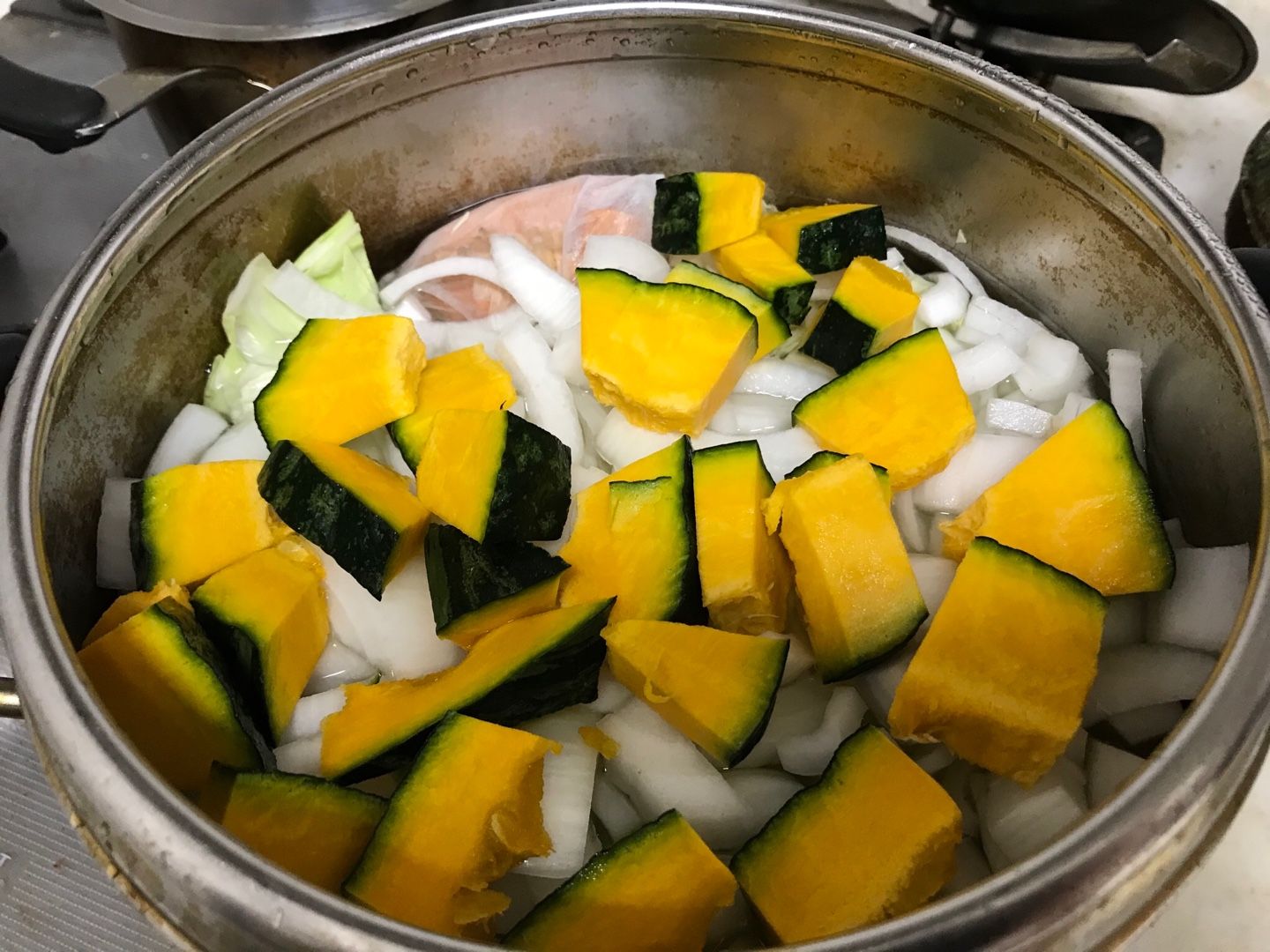 おはようございます😃小倉は晴れ後雨です。常備品の野菜スープが無くなったので、圧力鍋で野菜スープを作っています。材料は、人参、キャベツ、玉ねぎ、かぼちゃ🎃と水です。玉ねぎの皮も出汁をとります。5分間沸騰させ火を落とし冷まします。素敵な月曜日となりますように 記事にビビっときたらワンクリックお願いします!♪!!アダルトトラックバックやコメントはやめてください!!