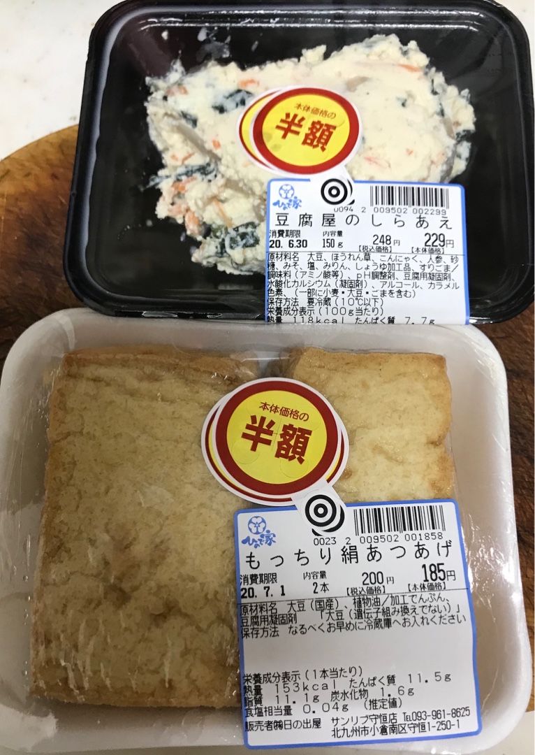 こんばんは、小倉は曇り☁️です。豆腐屋の見切り品は、白あえと絹揚げ豆腐でした。素敵な火曜日となりますように 記事にビビっときたらワンクリックお願いします!♪!!アダルトトラックバックやコメントはやめてください!!