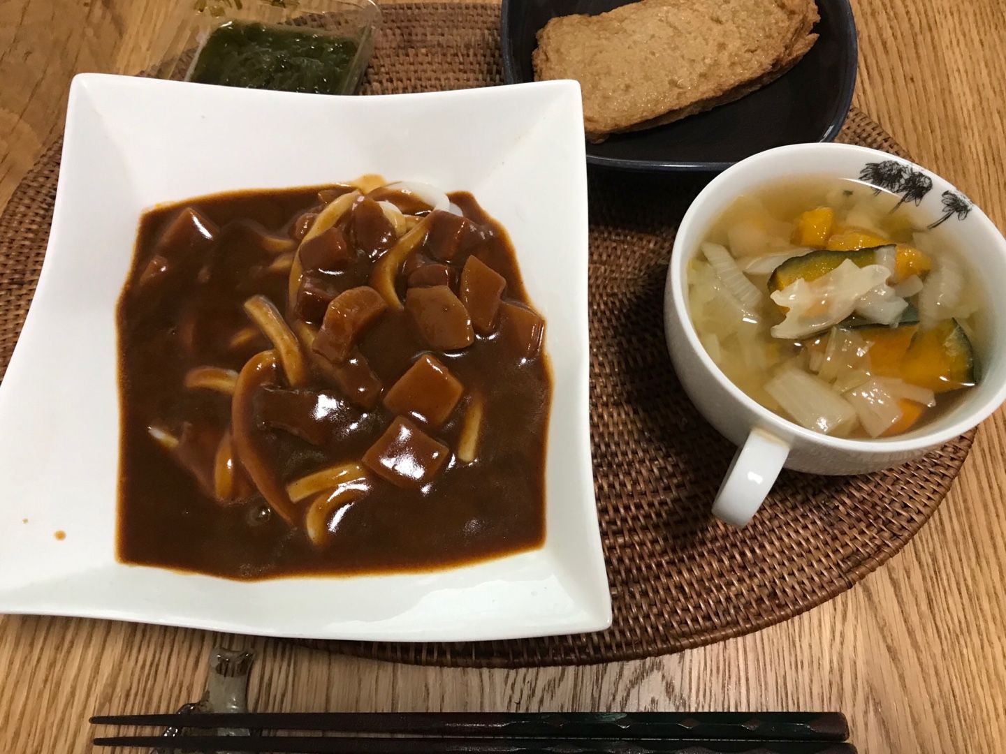 こんにちは😃小倉は晴れ後雨です。月曜日の昼食は、カリー屋の辛口カレーうどん、じゃこ天、野菜スープ、めかぶでした。素敵な月曜日となりますように 記事にビビっときたらワンクリックお願いします!♪!!アダルトトラックバックやコメントはやめてください!!
