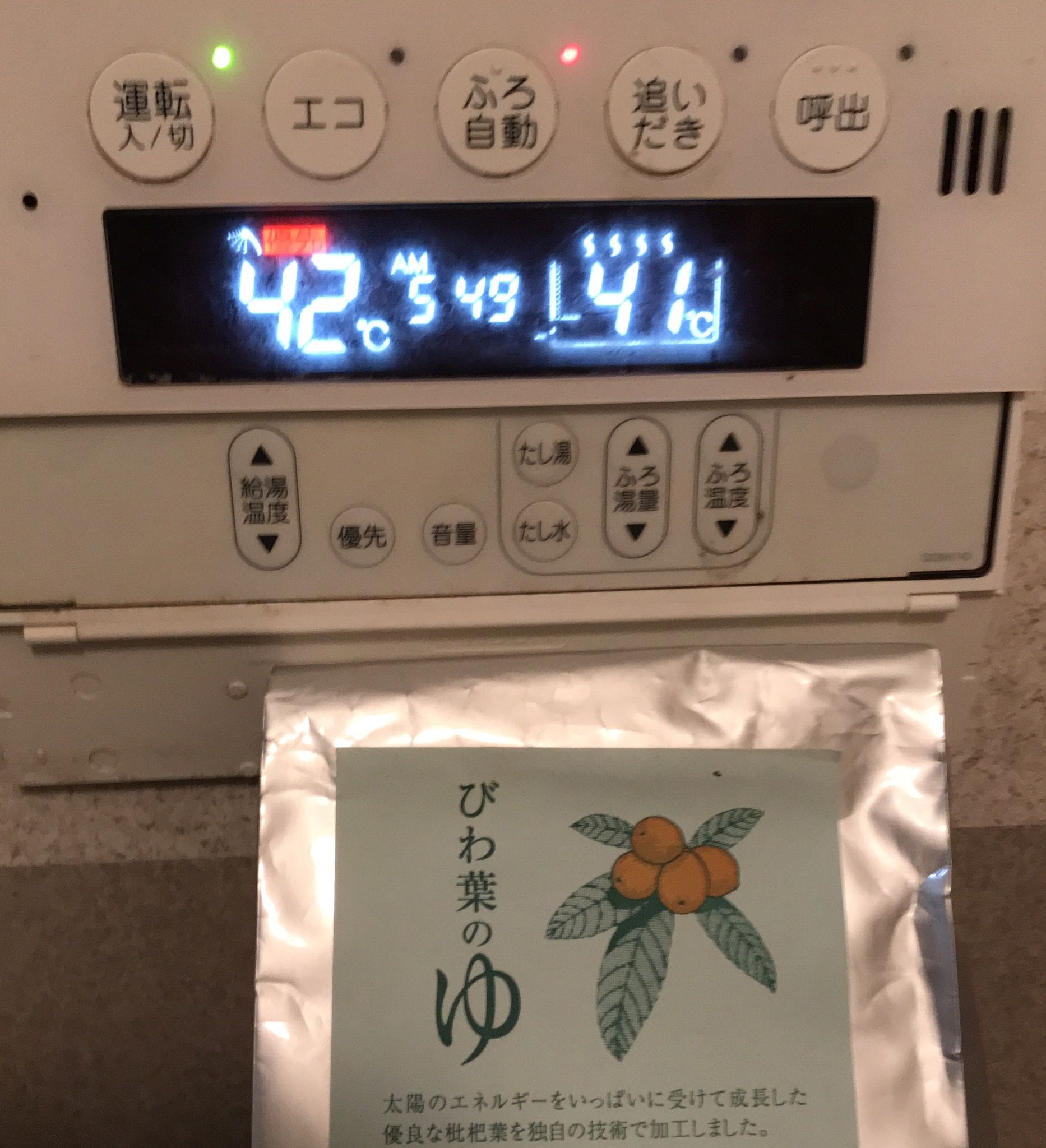 おはようございます😃朝食後、びわ葉の湯に入ります。ふろ自動で沸かしています。湯温は41℃に設定しています。素敵な火曜日となりますように 記事にビビっときたらワンクリックお願いします!♪!!アダルトトラックバックやコメントはやめてください!!
