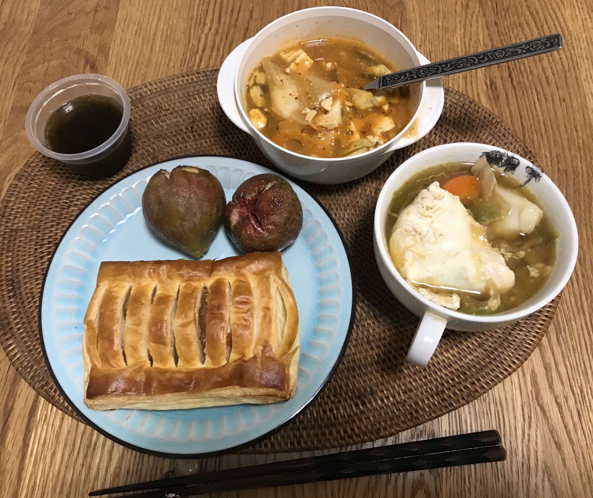 おはようございます😃火曜日の朝食は、アップルパイ、無花果、茄子と白菜キムチをトッピングした麻婆豆腐、卵と水餃子いり野菜スープでした。素敵な火曜日となりますように 記事にビビっときたらワンクリックお願いします!♪!!アダルトトラックバックやコメントはやめてください!!