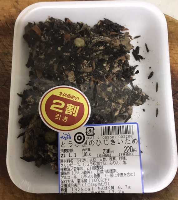 こんにちは😃とうふ屋の見切り品は、ひじきいためでした。素敵な木曜日となりますように 記事にビビっときたらワンクリックお願いします!♪!!アダルトトラックバックやコメントはやめてください!!