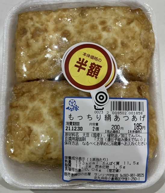 こんばんは豆腐屋の見切り品は、半額のもっちり絹あつあげでした。素敵な水曜日なりますように 記事にビビっときたらワンクリックお願いします!♪!!アダルトトラックバックやコメントはやめてください!!