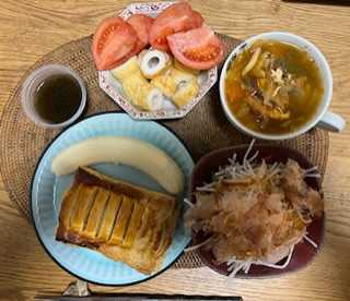 おはようございます😃日曜日の朝食は、アップルパイ、バナナ、鱧入りちくわ、トマト、花かつお大根サラダ、黒酢もずくしいたけ・大根、白菜キムチ・玉子入り野菜スープでした。素敵な日曜日となりますよう 記事にビビっときたらワンクリックお願いします!♪!!アダルトトラックバックやコメントはやめてください!!