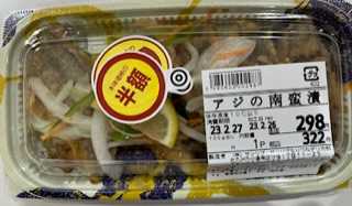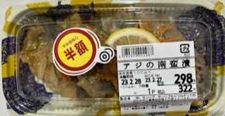 こんばんはサンリブ守恒店の見切り品は、半額のアジの南蛮漬でした。これで家飲みします。素敵な月曜日となりますように 記事にビビっときたらワンクリックお願いします!♪!!アダルトトラックバックやコメントはやめてください!!