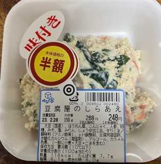 こんばんは豆腐屋の見切り品は、半額のしらあえでした。素敵な日曜日となりますように 記事にビビっときたらワンクリックお願いします!♪!!アダルトトラックバックやコメントはやめてください!!