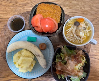 おはようございます。木曜日の朝食は、おいも蒸しまん、チョコレート効果、バナナカレー味ギョロッケ、トマト、花かつおミックスサラダ、梅干し、黒酢もずくと絹あつあげ・えのき・白菜キムチ・玉子入り野菜スープでした素敵な木曜日となりますように記事にビビっときたらワンクリックお願いします!♪!!アダルトトラックバックやコメントはやめてください!
