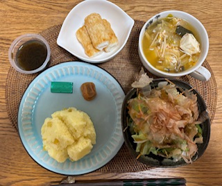 おはようございます。金曜日の朝食は、おいも蒸しまん、チョコレート効果、ひと口ちくわ、花かつおミックスサラダ、梅干し、黒酢もずくと絹あつあげ・えのき・白菜キムチ・玉子入り野菜スープでした素敵な金曜日となりますように記事にビビっときたらワンクリックお願いします!♪!!アダルトトラックバックやコメントはやめてください!