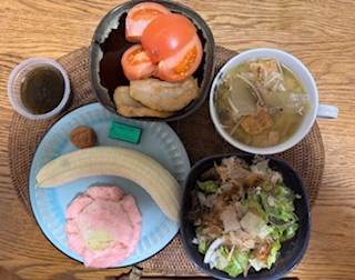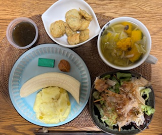 おはようございます。木曜日の朝食は、おいも蒸しまん、チョコレート効果、バナナ豆乳かまぼこ、花かつお大根サラダ、梅干し、黒酢もずく絹あつあげ・大根・えのき・白菜キムチ・玉子入り野菜スープでした素敵な木曜日となりますように記事にビビっときたらワンクリックお願いします!♪!!アダルトトラックバックやコメントはやめてください!