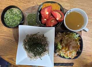 こんばんは。水曜日の夕食は、刻みのりつきそばを薬味でカレー味ギョロッケ、トマト、花かつおミックスサラダ、めかぶ絹あつあげ・しいたけ・えのき・玉子入り味噌野菜スープでした。 今月12日目の休肝日でした。薬味は、細ネギとおろししょうが、ゆず香るごまをめんつゆで素敵な水曜日となりますように記事にビビっときたらワンクリックお願いします!♪!!アダルトトラックバックやコメントはやめてください!
