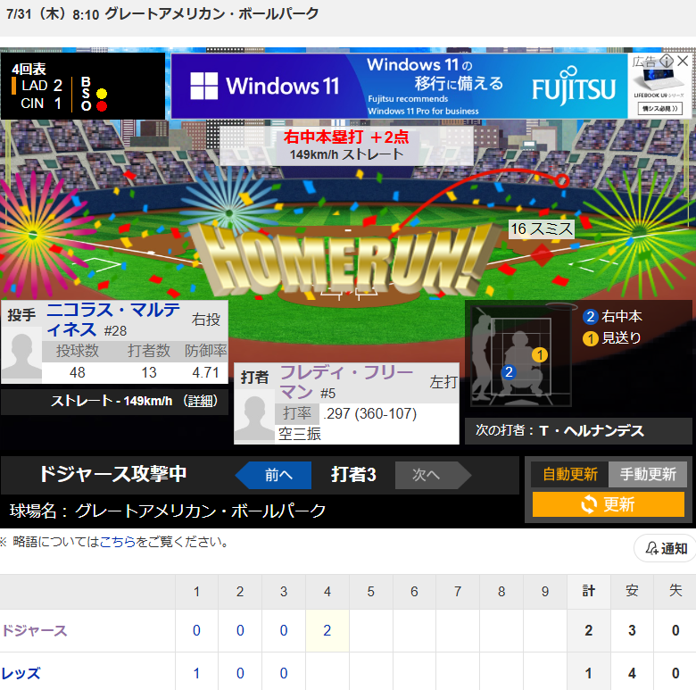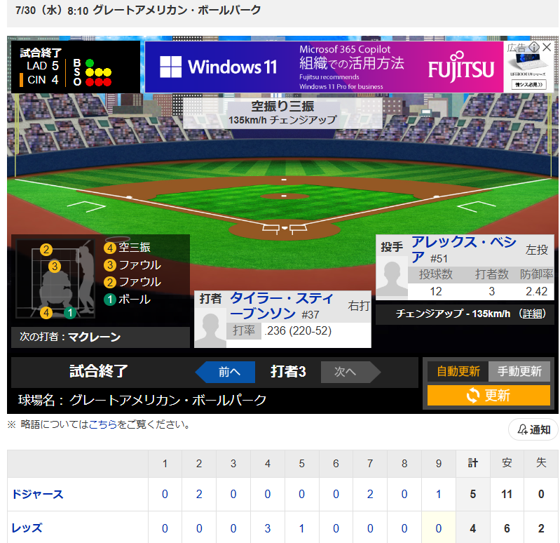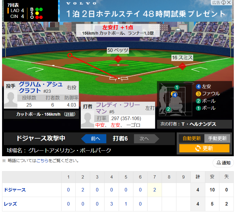 おはようございます。😃ドジャース 5-4 レッズ 素敵な水曜日となりますように記事にビビっときたらワンクリックお願いします!♪!!アダルトトラックバックやコメントはやめてください!