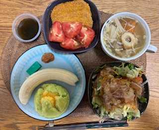 おはようございます。水曜日の朝食は、メロン蒸しまん、チョコレート効果、バナナカレー味ギョロッケ、、トマト、花かつおミックスサラダ、梅干し、黒酢もずく絹あつあげ・しいたけ・えのき・玉子入り味噌野菜スープでした。素敵な水曜日となりますように記事にビビっときたらワンクリックお願いします!♪!!アダルトトラックバックやコメントはやめてください!