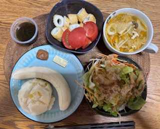 おはようございます。火曜日の朝食は、栗蒸しまん、チョコレート効果、バナナカレー味ギョロッケ、トマト、花かつおミックスサラダ、黒酢もずく、梅干しほうれん草とベーコンのスープでした。素敵な火曜日となりますように記事にビビっときたらワンクリックお願いします!♪!!アダルトトラックバックやコメントはやめてください!