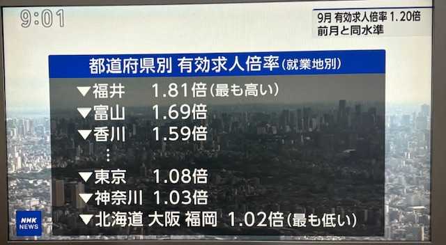 おはようございます😃9月有効求人倍率1.20倍 前月と同水準 素敵な金曜日となりますように記事にビビっときたらワンクリックお願いします!♪!!アダルトトラックバックやコメントはやめてください!!