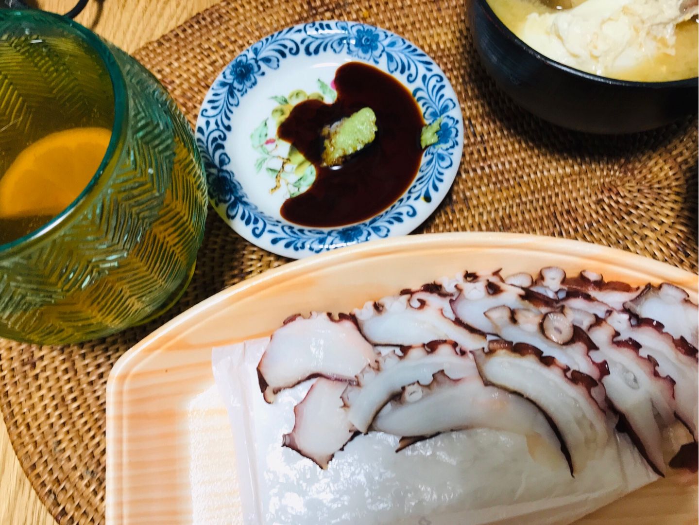 この後は、タコ刺身を肴に芋焼酎を飲みます。