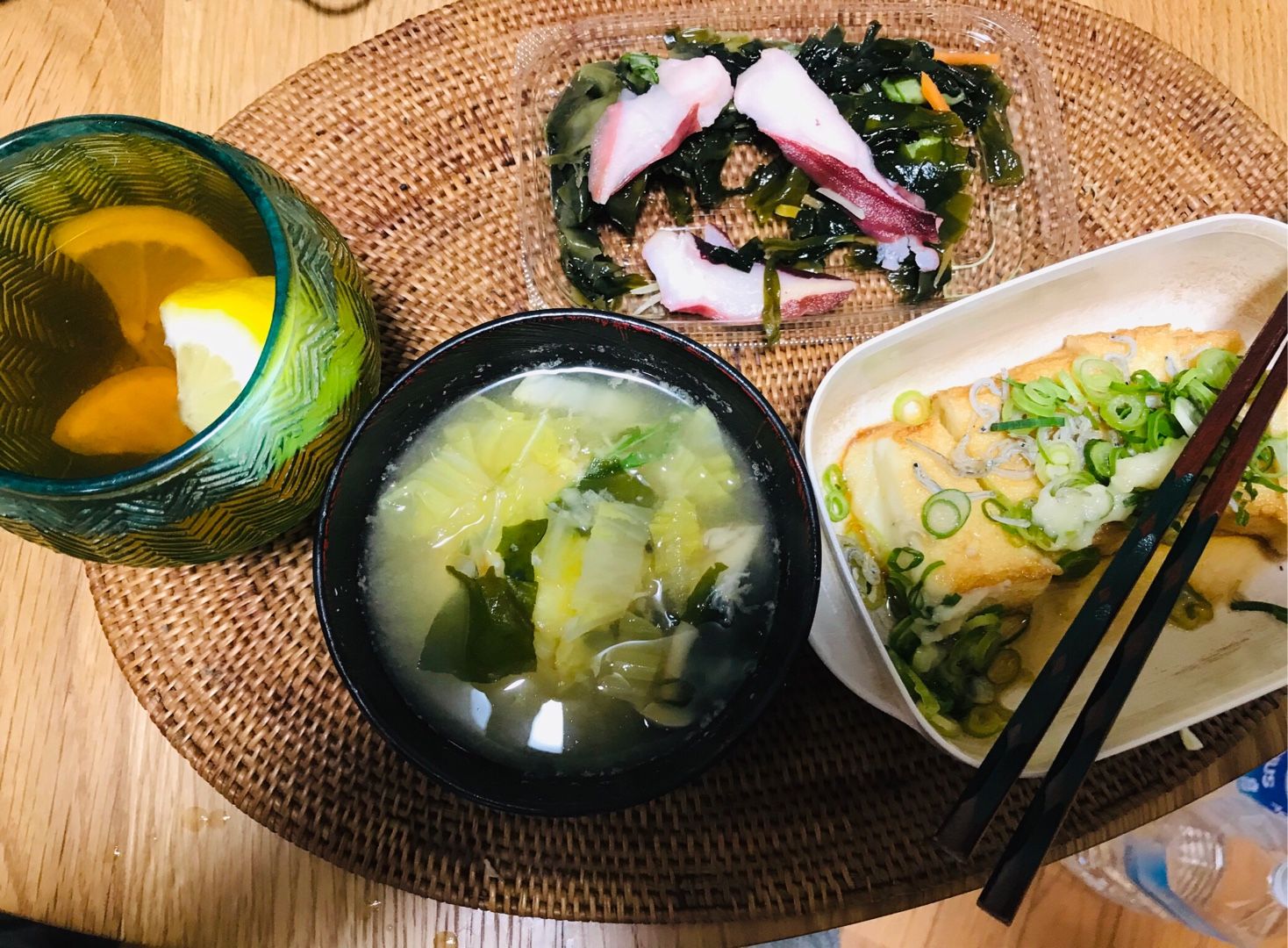卵いり味噌汁とレモン🍋入り酎ハイでした。
