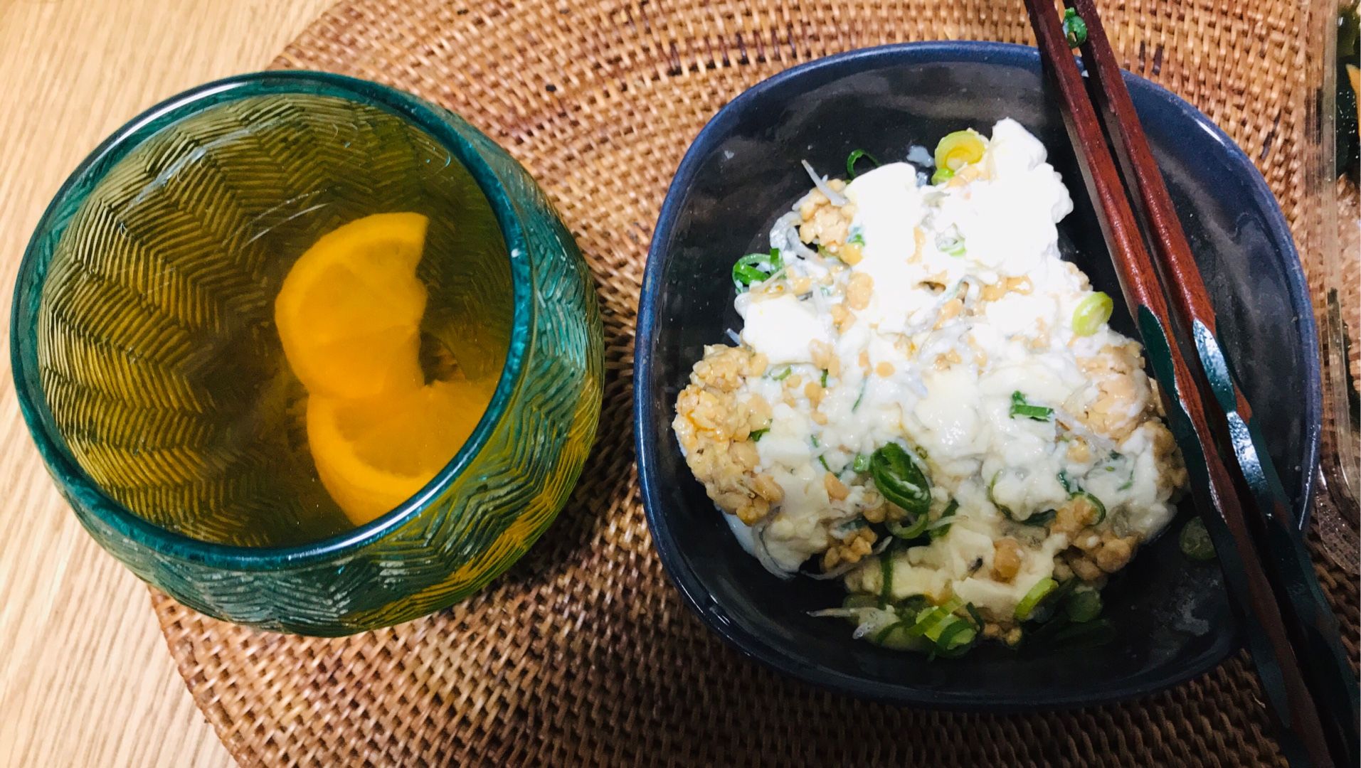 カットダイコンサラダ、レモン🍋入り酎ハイでした。