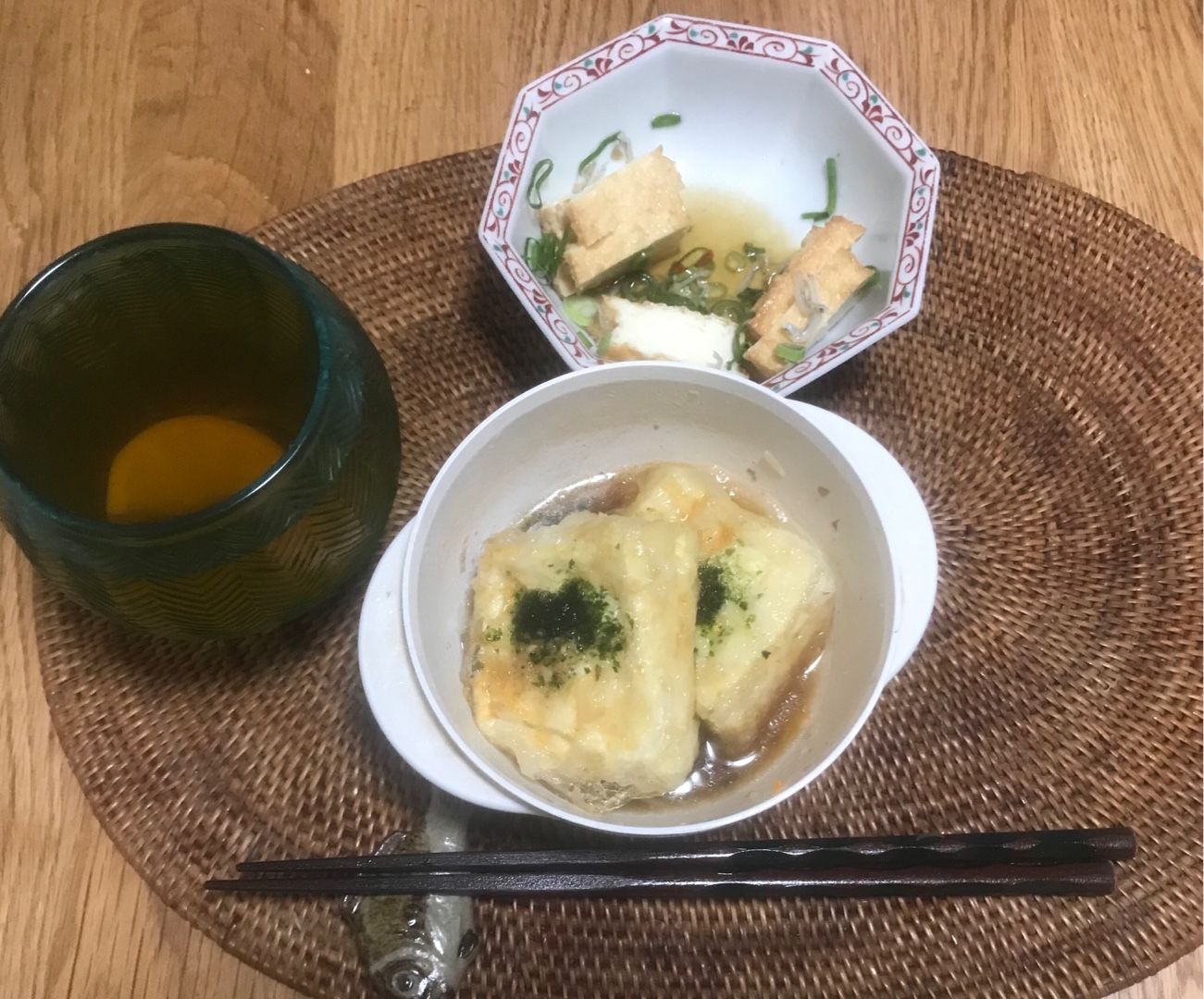 ​​ この後、揚げ出し豆腐を肴にごぼう茶割り芋焼酎を飲みます。
