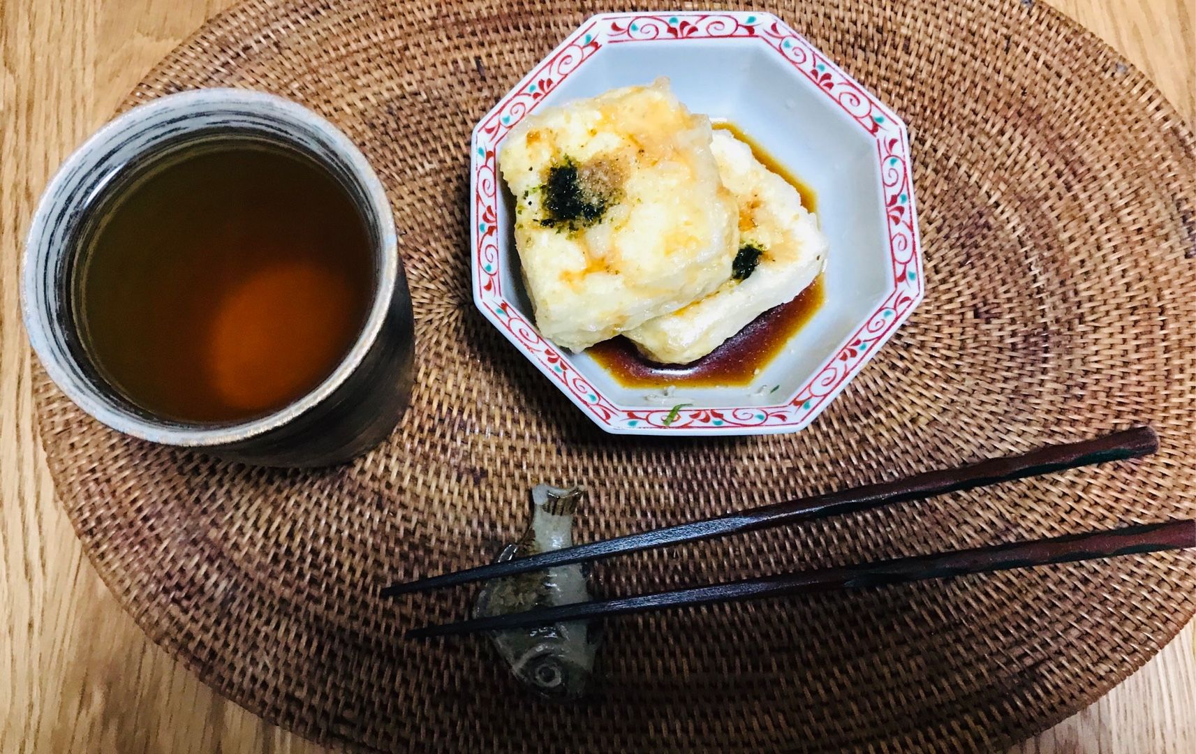 この後は、お代わりの水餃子入り野菜スープ、揚げ出し豆腐を肴に