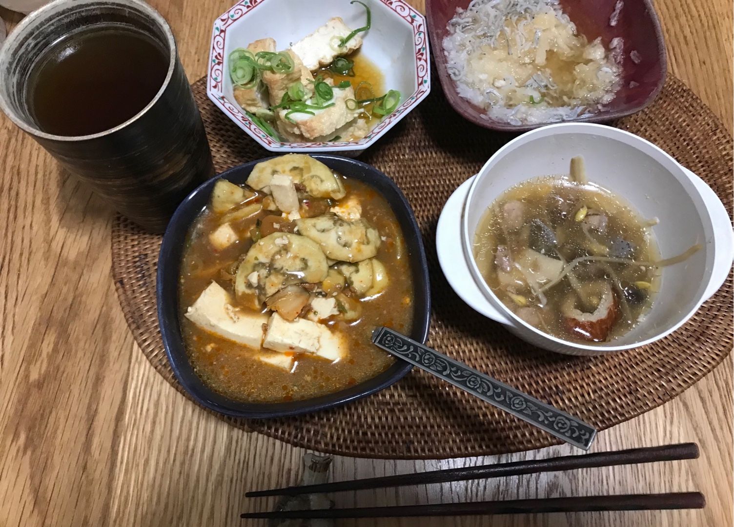 トッピングした麻婆豆腐、ちりめんダイコンスリ、
