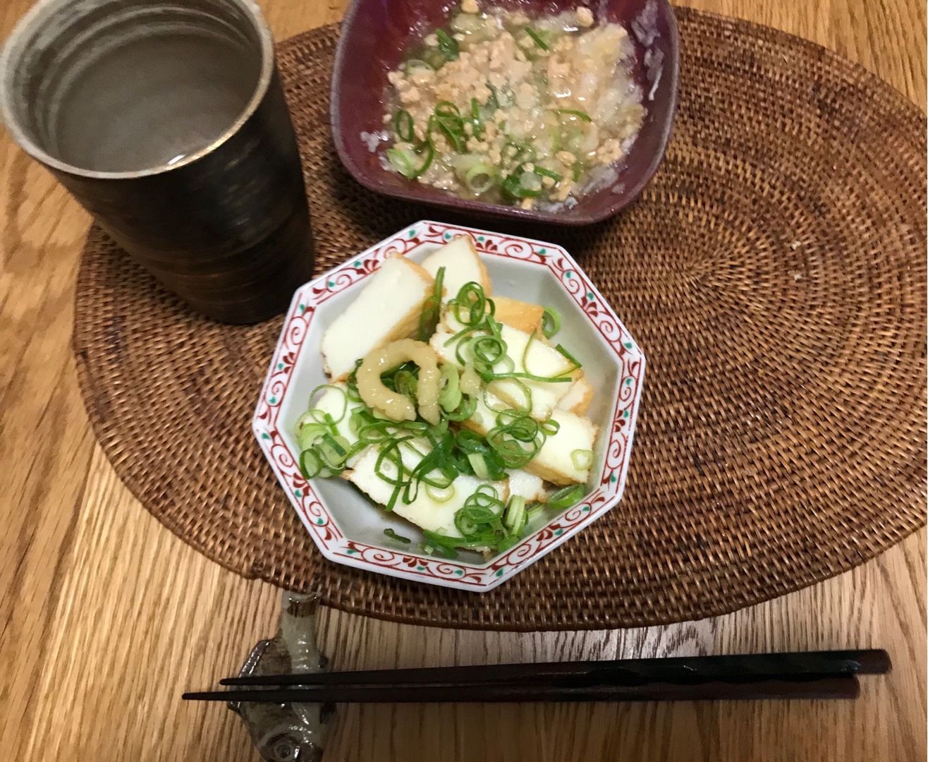 ​金曜日の家呑みは、筑前煮、細ねぎとアマニ油を