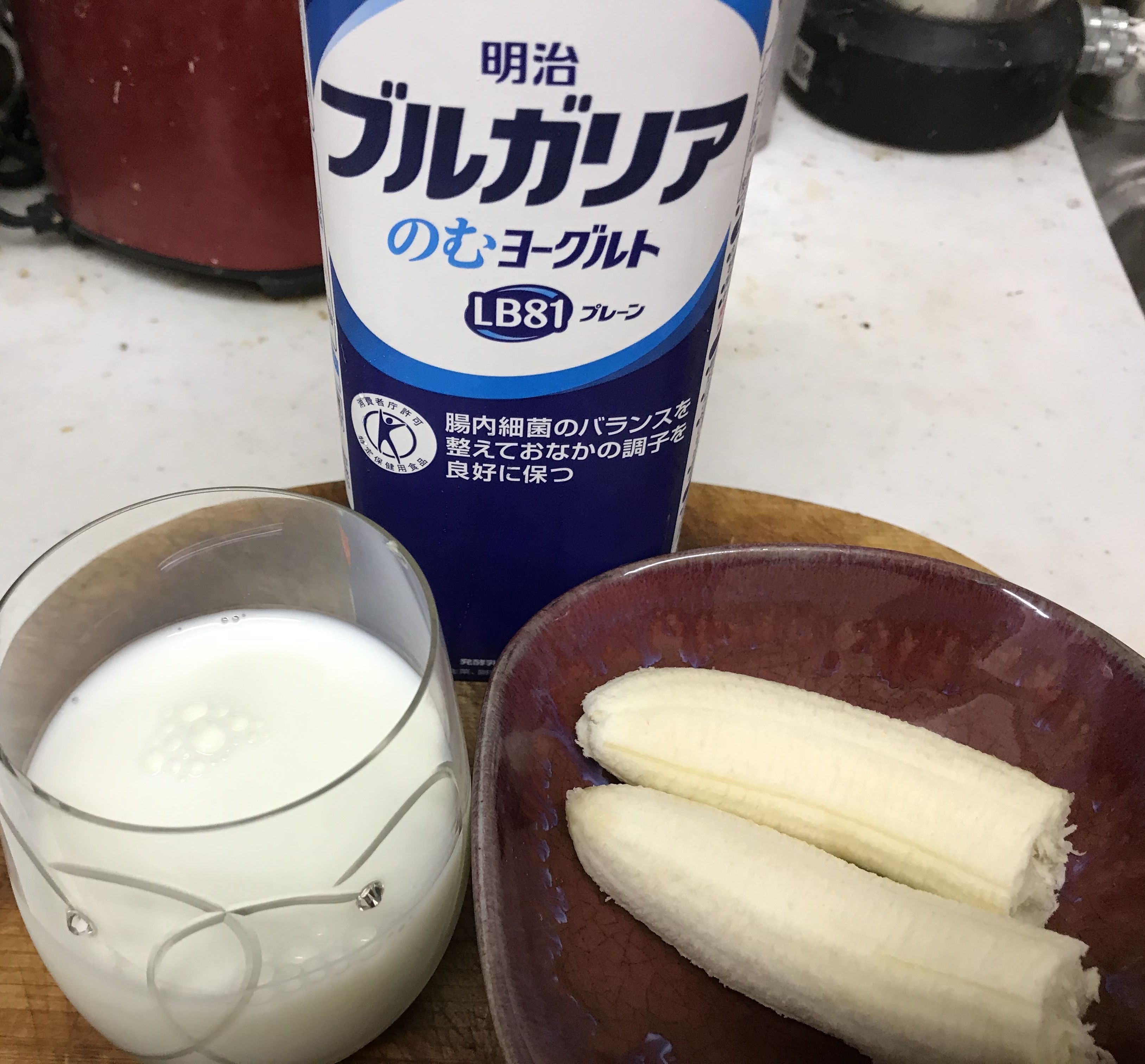 散歩に行く前に、バナナとのむヨーグルトでおやつタイム。