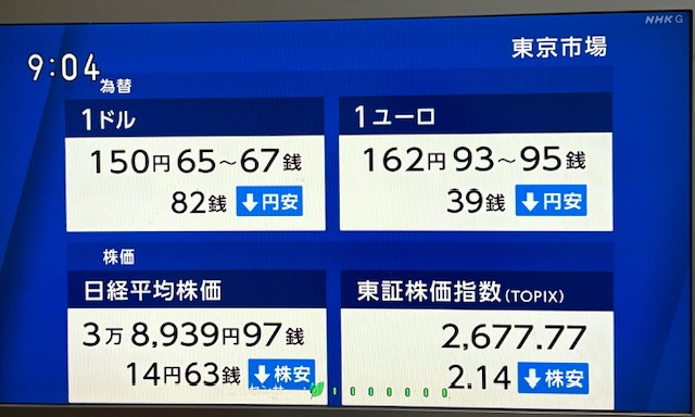 ​​日経平均株価9時04分現在 14.63円 株安 でした