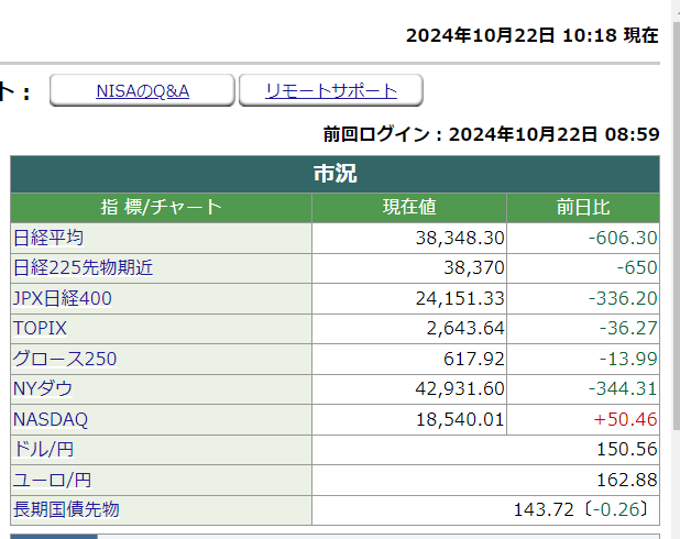 ​​日経平均株価10時18分現在 606.30円 株安 でした