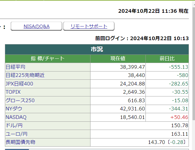 ​​日経平均株価前場は 555.13円 株安 でした