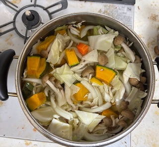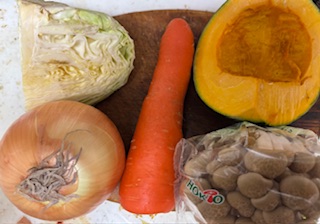 材料は、人参、キャベツ、玉ねぎ、かぼちゃ、