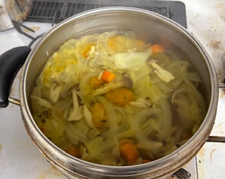 ちくわ・大根・白菜キムチ・玉子入り味噌野菜スープでした