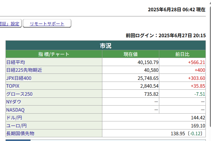 日経平均先物時6時42分現在 +400円でした