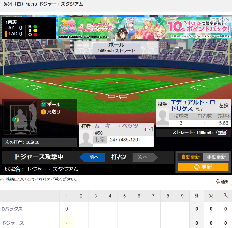 大谷翔平選手  第一打席 初球を打ってセカンドゴロ