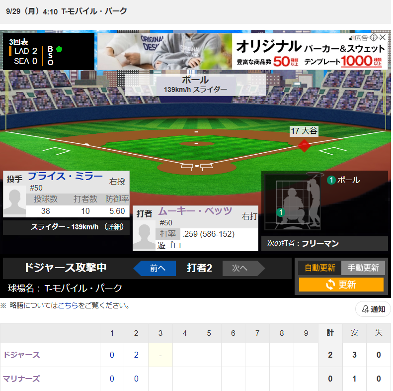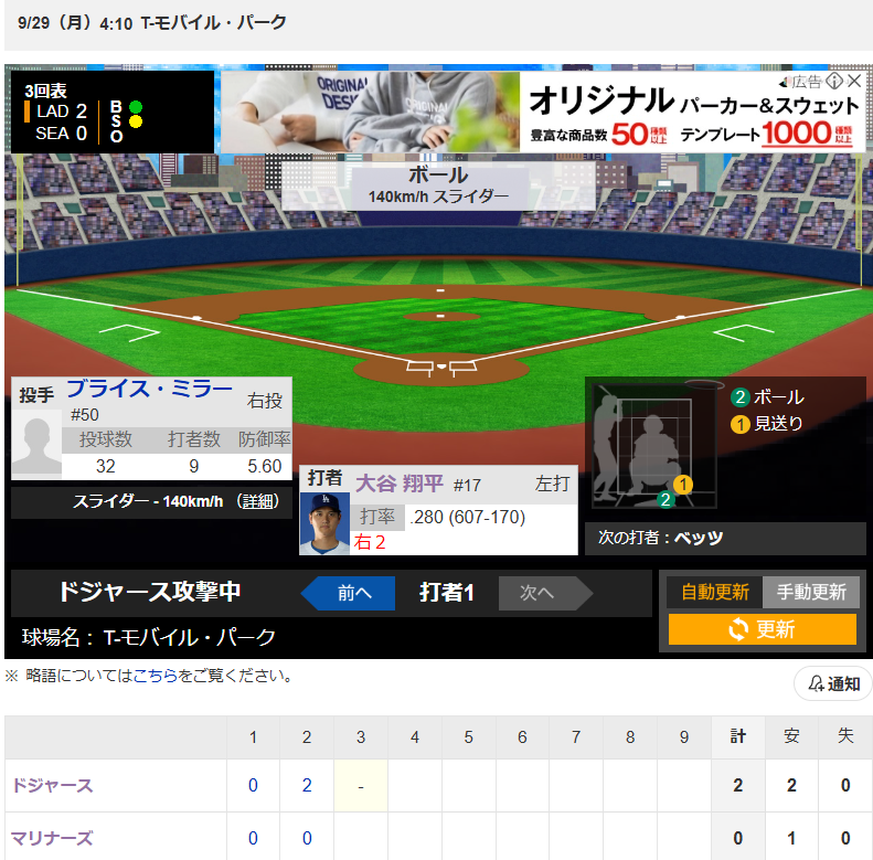 大谷翔平選手  第ニ打席 ライトへのヒット