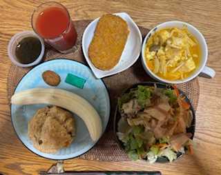 月曜日の朝食は、くるみ蒸しまん、チョコレート効果、​バナナ