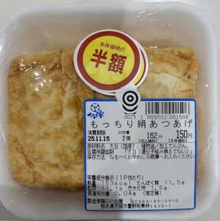 豆腐屋の見切り品は、半額のもっちり絹あつあげでした。