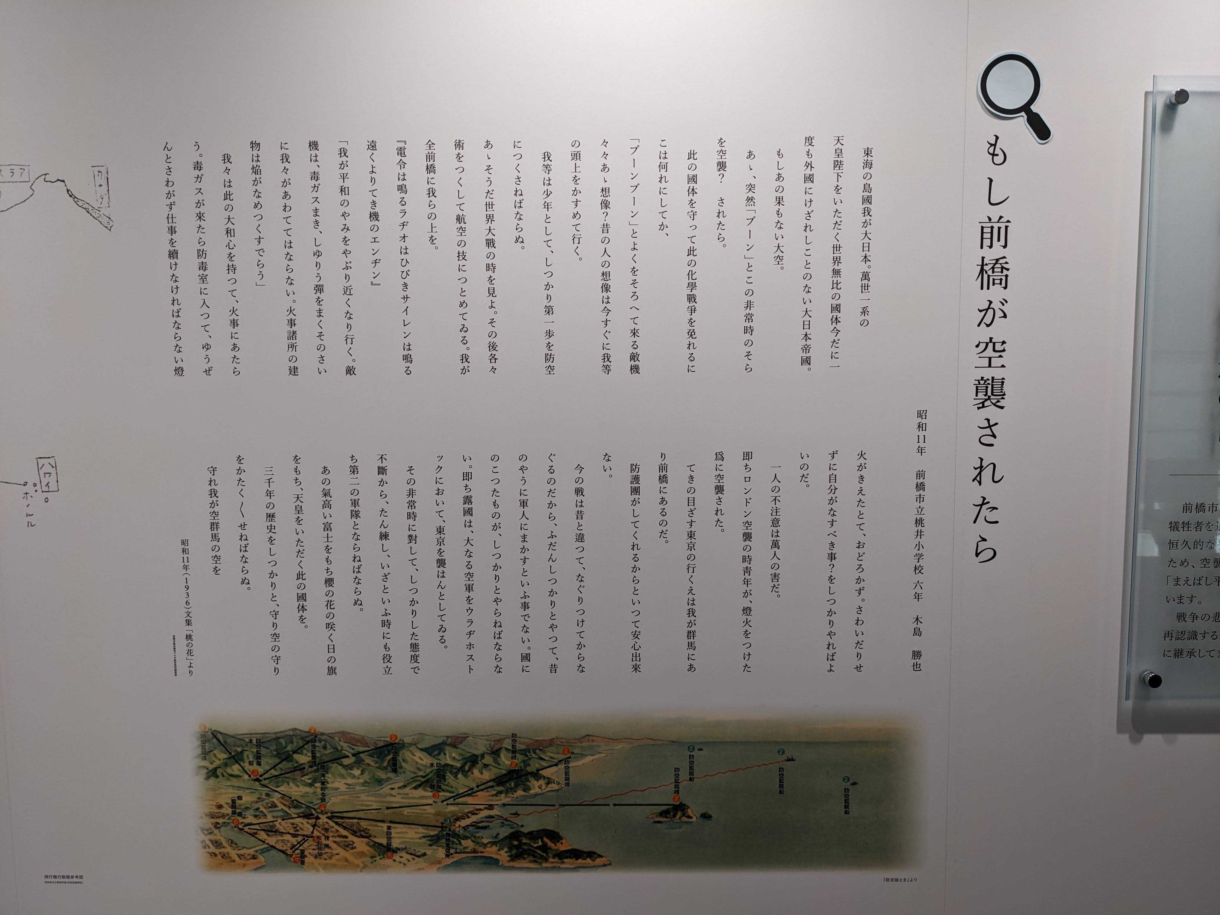 群馬県前橋市にある前橋空襲と復興資料館を訪れてきました。駐車場はまえばしホールの駐車場内に専用の無料スペースがあり、7台分停められます。もし満車の場合でも、第二駐車場でその旨を伝えれば駐車可能です。館内では大戦末期の本土空襲の様子を詳しく知ることができます。米軍の空襲予告ビラから防空壕での避難の様子、さらに大きな被害とそこからの復興まで、戦時中の民間人被害の実態が展示されています。悲惨な記憶ではありますが、歴史の一部として戦争がもたらした被害や復興の過程を学ぶ貴重な場所です。戦時中の記憶や被害の実態を学ぶ意味でも、一度訪れてみることをおすすめします。