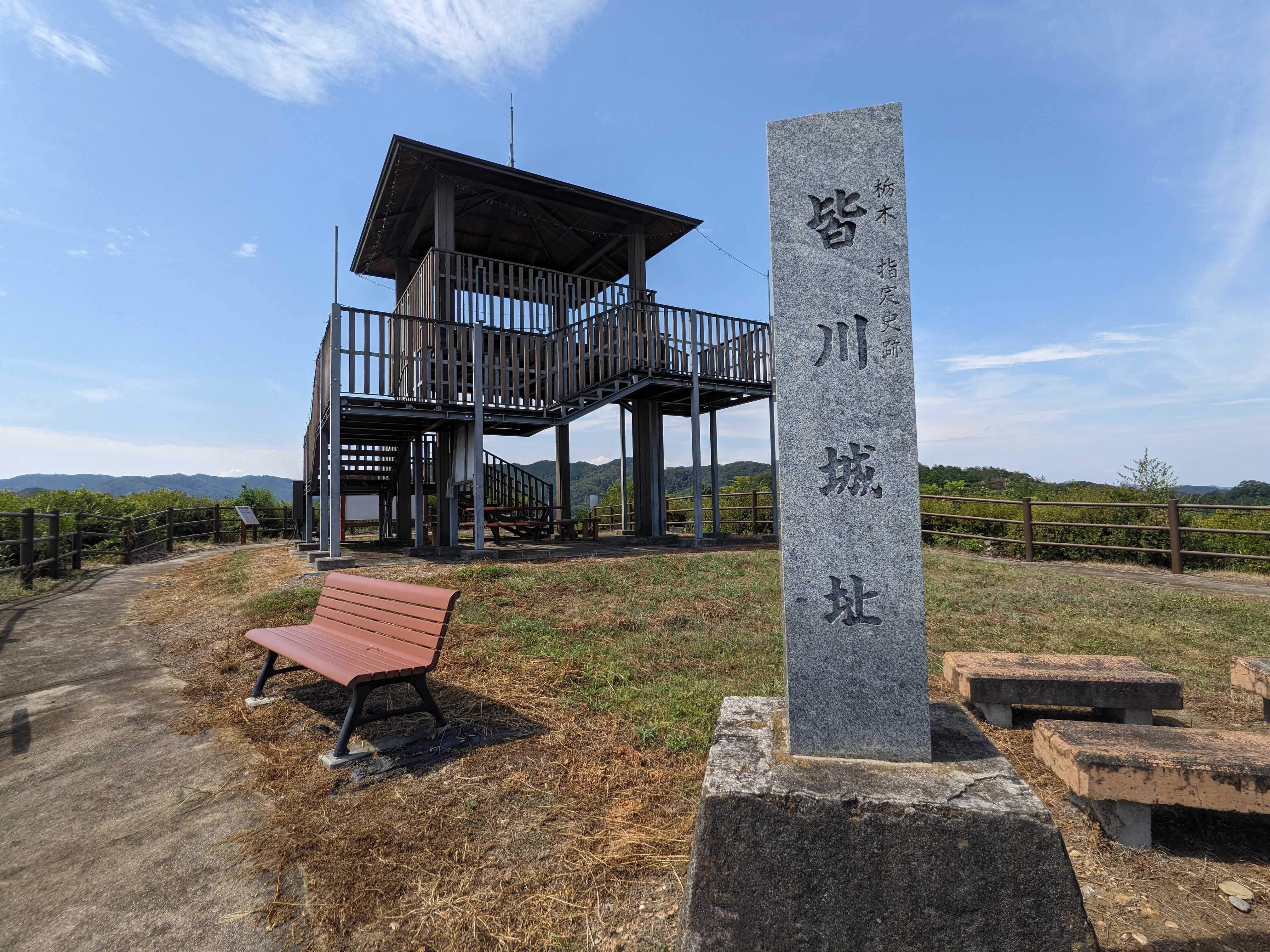 栃木県栃木市の皆川城址へ行ってきました。城跡は公園として整備され、公民館の無料駐車場も利用できるようです。山城のため頂上まで登りますが、歩道がきちんと整備されているので、特別な履物でなくても問題ありません。頂上は眺望が素晴らしく、筑波山まで見渡せる気持ちの良い景色が広がります。お近くに来た際は、一度立ち寄ってみてはいかがでしょうか。