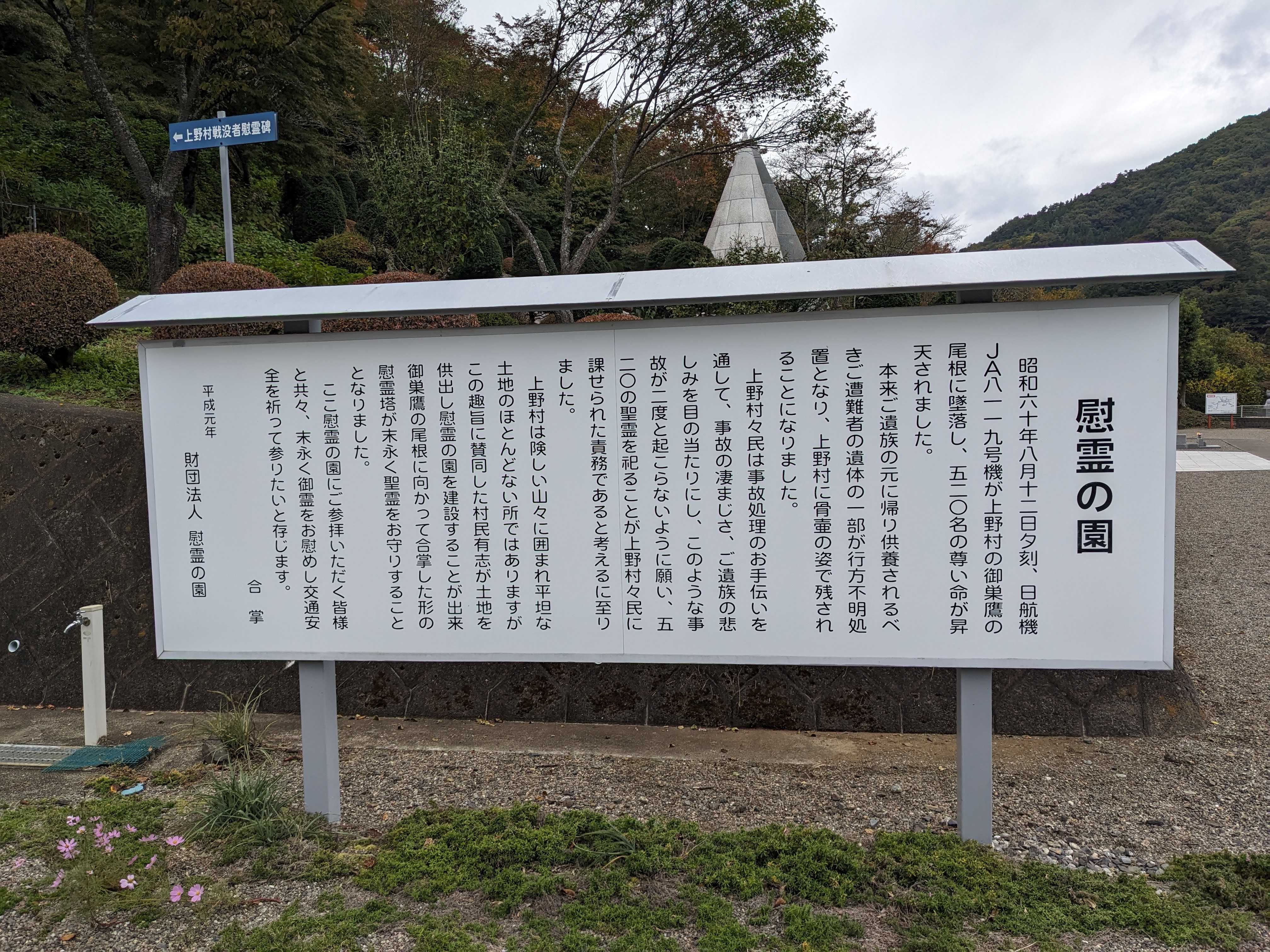 群馬県上野村にある慰霊の園を訪れてきました。ここには日本航空機事故の慰霊碑と展示棟が設置されています。駐車場は無料で利用可能です。展示棟の入場も無料ですが、写真撮影はNGとなっています。館内では、事故の経緯や被害の状況、そして現場である上野村で慰霊活動がどのように行われてきたかを学ぶことができます。悲しい事故の記憶ではありますが、犠牲者への思いと地域の取り組みを感じられる場所です。事故の経緯を改めて深く認識し、慰霊の意義について考え、感じることができる場所です。上野村を訪れる際には、ぜひ慰霊の園にも立ち寄ってみてください。