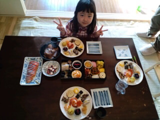 あけましておめでとうございます!!!今年もどうぞよろしくお願いいたします。写真は今朝のおせち~。お重に詰める気はあんまりなかったのですが、一応・・・。だって、詰めて、減って、詰めての繰り返しがあんまり好きじゃない・・・。ので、お皿盛りが好きです。小桃ベスト3は岩石卵伊達巻き黒豆ワーストは、なます、数の子など・・・生ちゃんベスト3は田作り(やっぱり!!!)岩石卵数の子(変な味がしないから・・・だそうな。)ワーストは、生もの。ただの好き嫌いですね。却下。(笑)二人に好評だった岩石卵は作り方簡単~。有森さんのおせちの本に載っていたのですが、かな~り簡単です。錦卵よりも簡単なのでは?二人とも手がかからなくていいわね~。(笑)しかし、小桃に、お昼も夜もおせちとお餅だよ?と言ったら「あきるじゃん」と言われた!(怒)お正月っていうのはそういうもんなんだよ!!!!!まったく。ふ~。結局、お昼はファミレスでした。はい。でも、晩ご飯もおせちとお餅ですよ~~~だ。********今年の抱負は漢字一文字であらわすなら・・・<味わう>です。Lさんに「これ以上?」って言われましたが。(笑)2008年が全力疾走だったので、2009年はもう少し一つ一つを味わいながら前に進んでいきたいなぁと思っています。具体的な目標はAmazonにブックレビューを書く。忘れ物をしない・・・・できるだけ・・・・・・。(汗)メールの返信は2日以内にする。パン基礎上級編を開催する。です。お正月に読みたい本がたくさんあるので、まずはその辺りから~。しかし、大国魂神社はすんごい人出でした。氏神様にいってから向かいましたが・・・あまりの人のすごさに遠くから拝んで帰ってきただけです。小桃に「なんてお願いすればいいの?」と聞かれて「急にお願いされても神様も困っちゃうから、まずはいつもありがとうございますって言うんだよ。」とか「あそこに神様がいるの?」と聞くので「今日はみんながお参りに来ているから、天の国から降りて来てくれていると思うよ。」とか、神道の基本の<き>のお話ができました。こうやって、日本人の体の中には神道がしみ込んでいくんだねぇ。