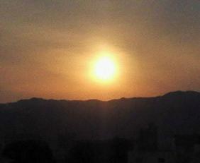 ニュースを見てますと、今日の朝8時にはもう高知空港再開していたようですね。さすが早いです。私はといえば、今日も遅く、明日は朝一番の新幹線の予定です。疲れた中にも、夕日があまりにきれいだったので、思わずパチリ。まさに、山に沈まんとしているところです。幻想的で、窓もオレンジになるくらい。ほんの1分ほど見とれていました。明日の活力ですね
